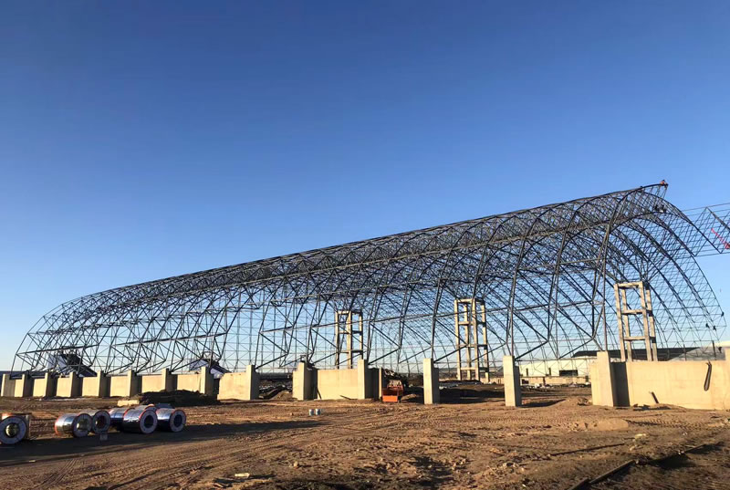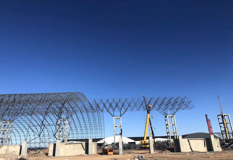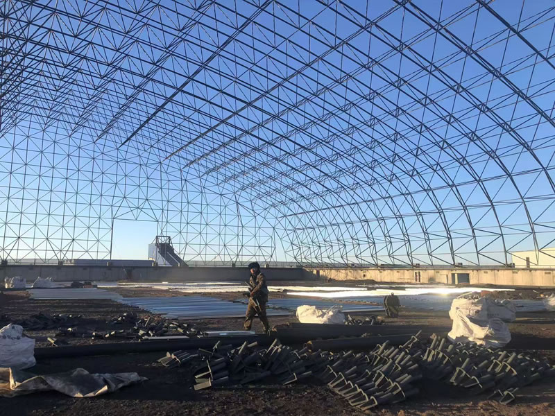 3、材料:正放四角錐螺栓球節(jié)點(diǎn)網(wǎng)架,按照甲方確認(rèn)的圖紙?jiān)O(shè)計(jì)要求加工制作。網(wǎng)架主材材質(zhì)為Q355B鋼管,底漆二道70um,主檁條鍍鋅C型鋼C220*75*20*3.0,次檁條鍍鋅C型鋼C180*70*20*2.5,屋面板0.5mm厚彩鋼單板