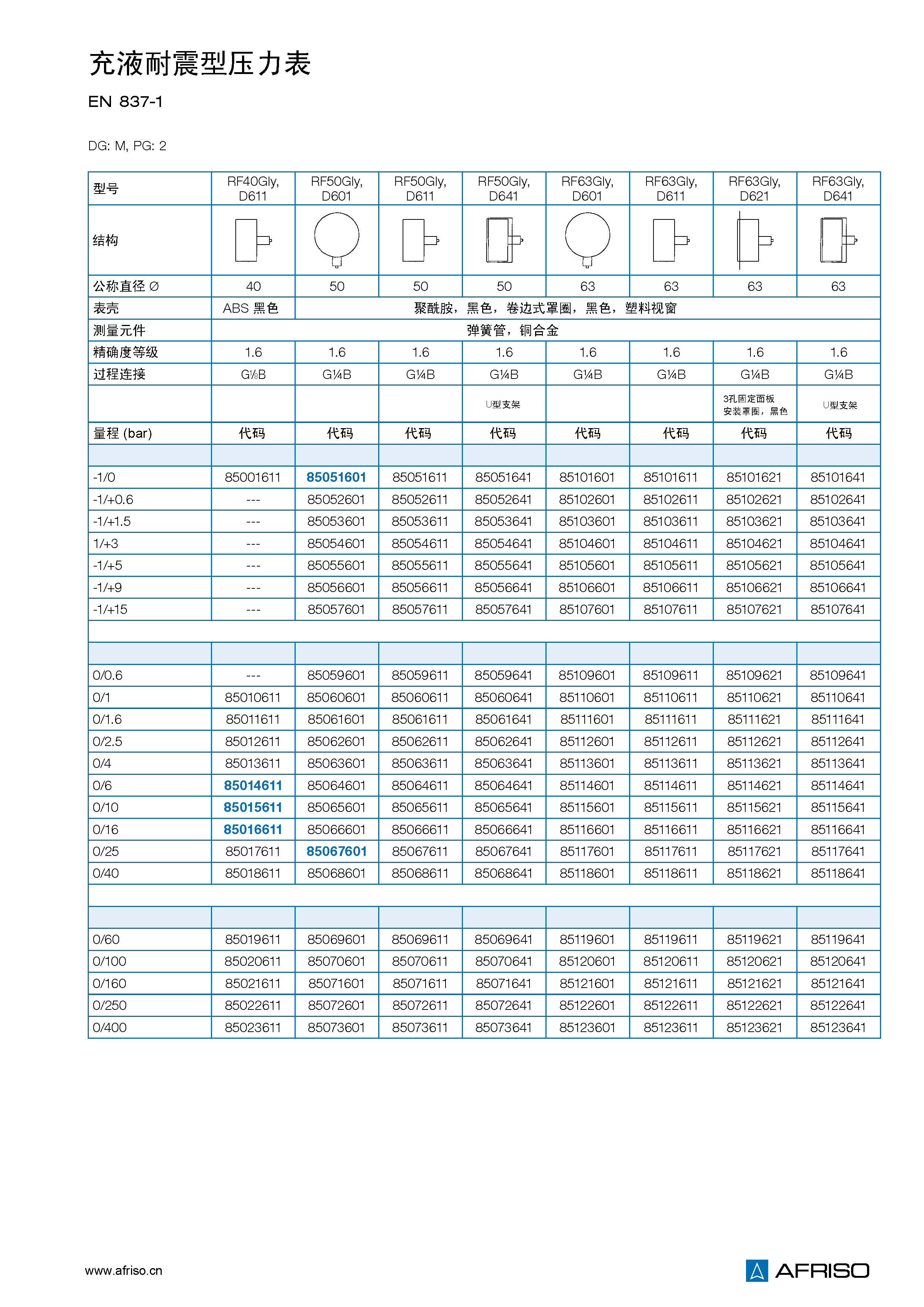 量程 (EN 837–1/5)