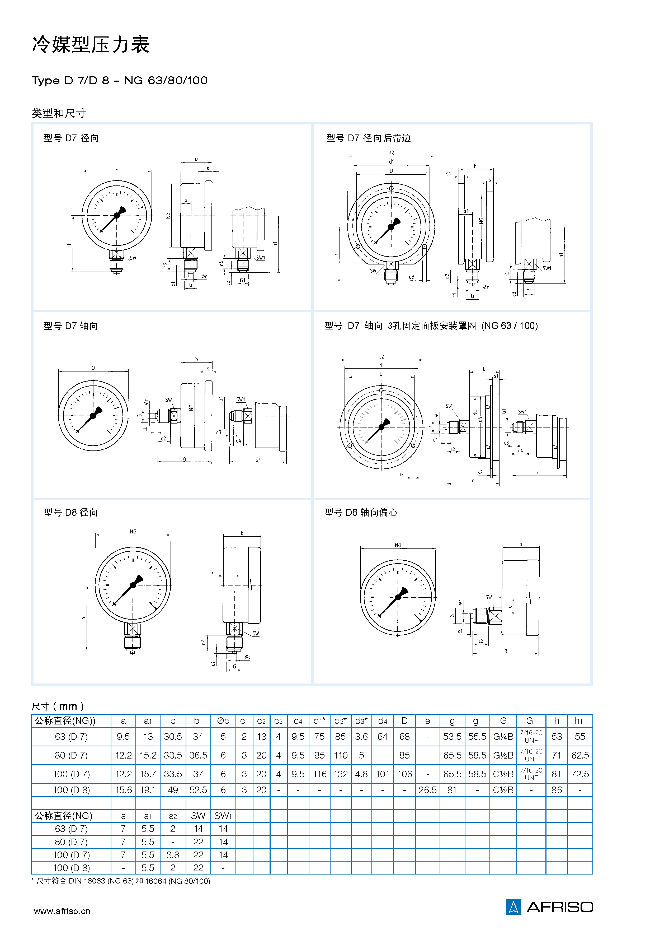 量程 (EN 837–1/5)