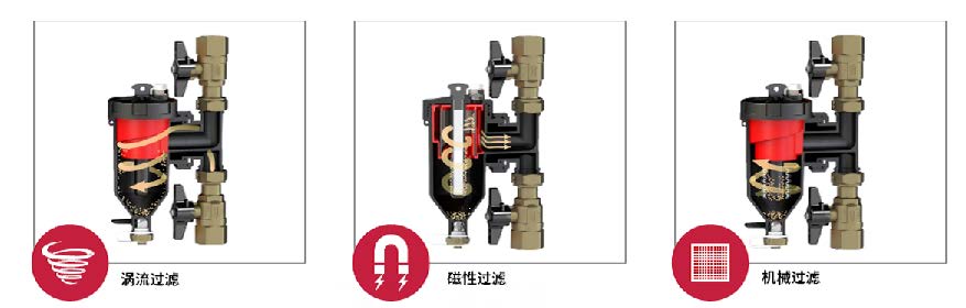 供熱系統(tǒng)的金屬部件容易腐蝕,使雜質(zhì)混入水中,一旦這些鐵屑觸及熱發(fā)生器,便很容易卡進(jìn)交換機(jī),或附著在循環(huán)器的磁體上,引起部件堵塞。ADS 160 是一款整合了三道過(guò)濾工序的磁性過(guò)濾器,采用專利設(shè)計(jì),可維持系統(tǒng)健康運(yùn)行,性能持續(xù)有效,尺寸輕巧,易于安裝。