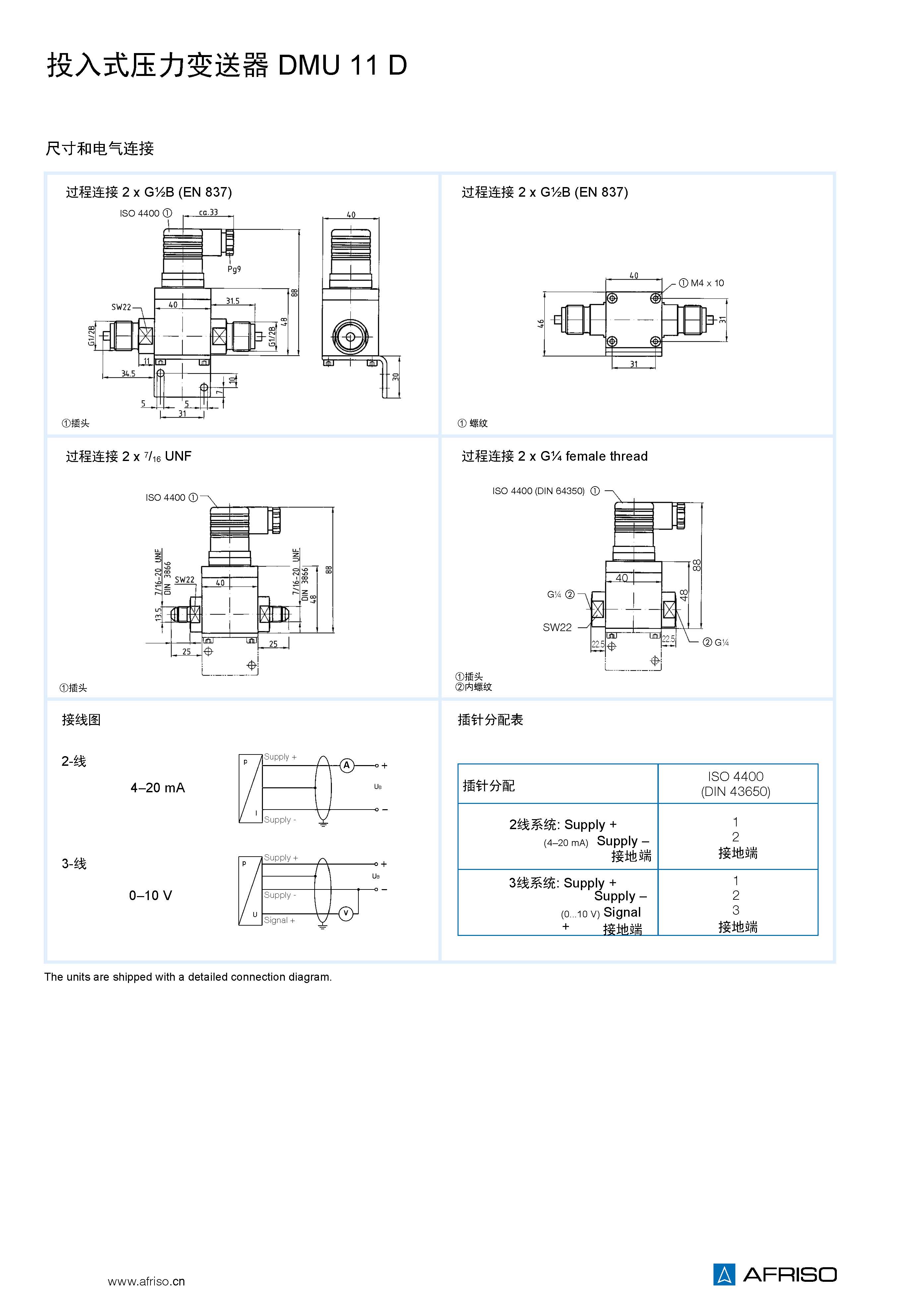 插頭和接線盒符合標準ISO 4400 (DIN 43650-A)IP65